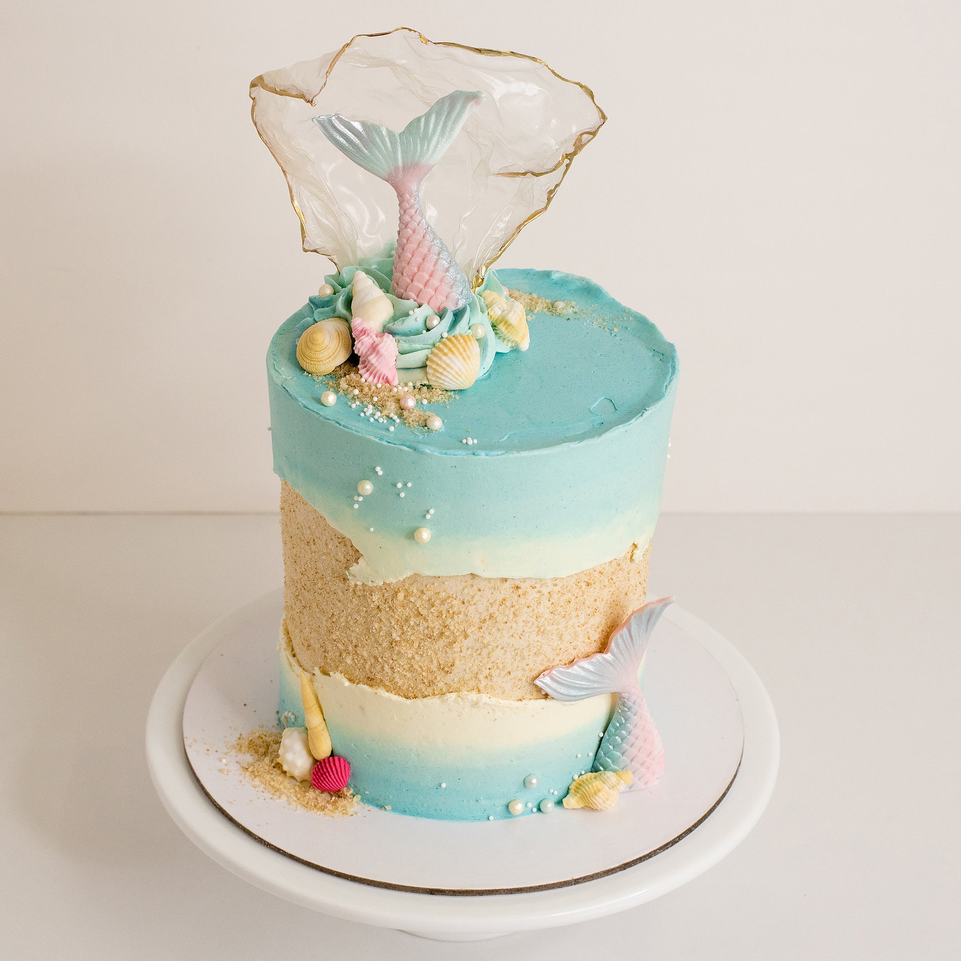 If you're dreaming of magical mermaid tails, shimmering pearls and edible seashell this delicate oh-so-pretty cake will transform your next occasion into an under the sea wonderland.