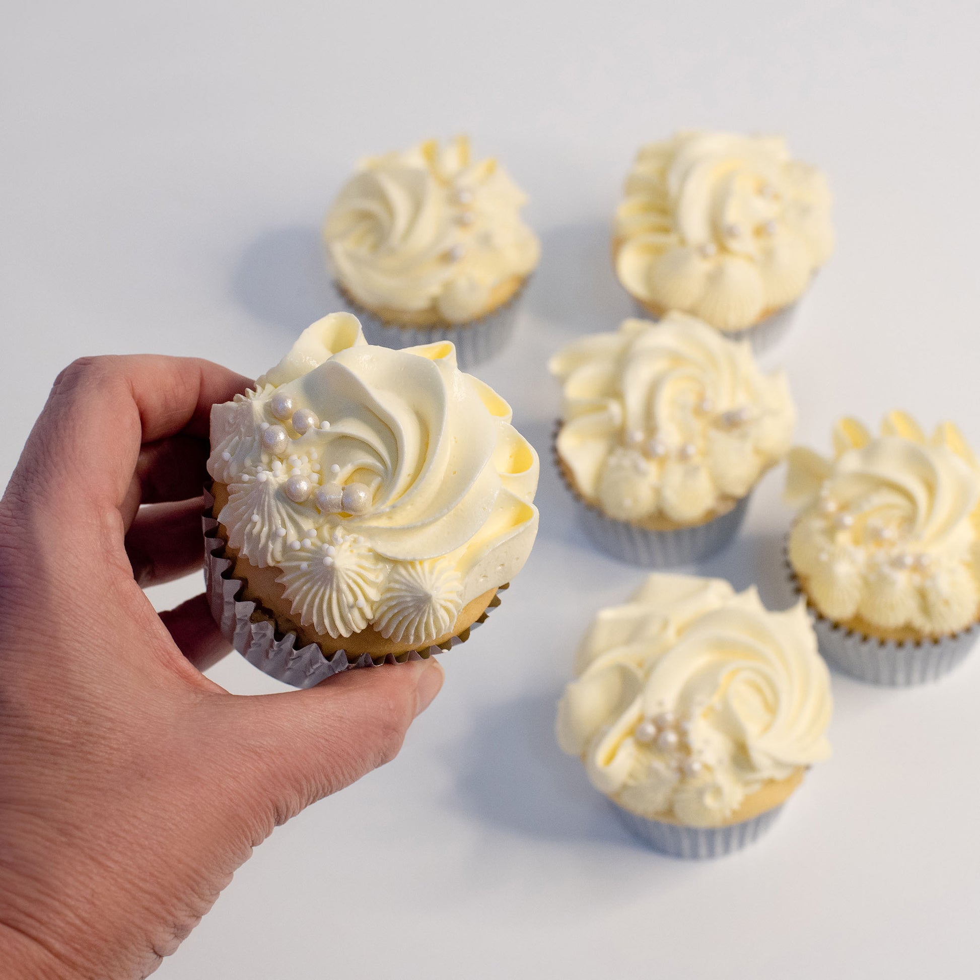 - The Decorations: Keeping it classic white, each cupcake secret is hidden decorated with fancy-pants piping a selection of shimmering crisp-pearls.