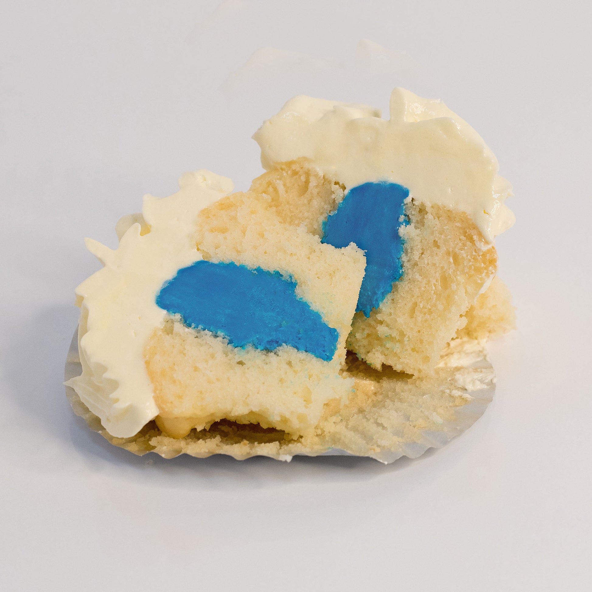 - The Inside: Each scrumilicious moist vanilla cupcake holds your secret - you choose the colour inside filling either pink or blue to reveal the gender of your new bundle of joy or give us the envelope/email so you are just as surprise as your guests are.