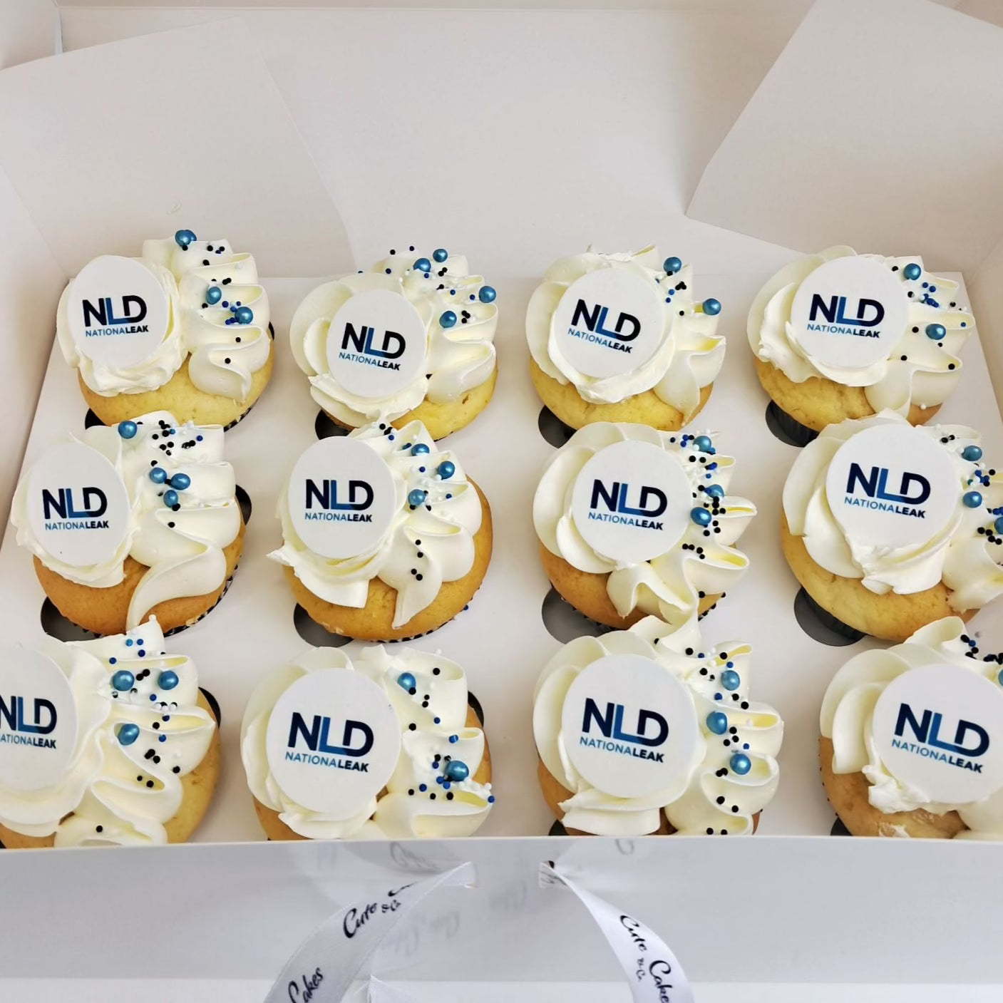 - Custom Logo Decoration: These delectable treats proudly showcase your company's logo, as an edible image atop the cupcake, also adorned with your brand coloured sprinkles, harmonising perfectly with your company's aesthetic and creating a cohesive, eye-catching presentation.. This personalised touch highlights your brand in a unique and tasty way.