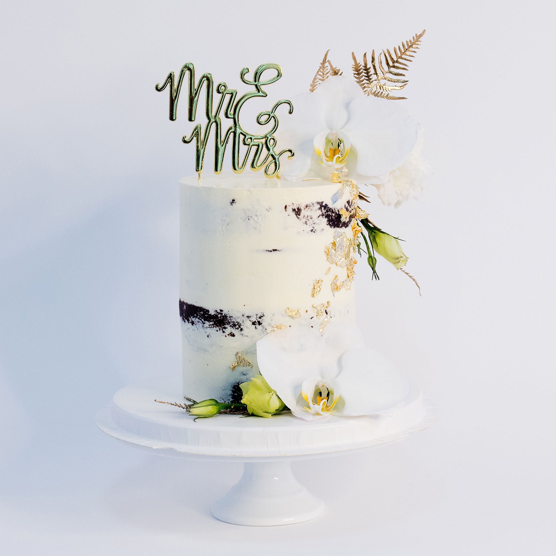 Notes: Any stands, toppers or props are for styling purposes only. These are not included with the cake. Flowers are not edible and need to be removed before serving.