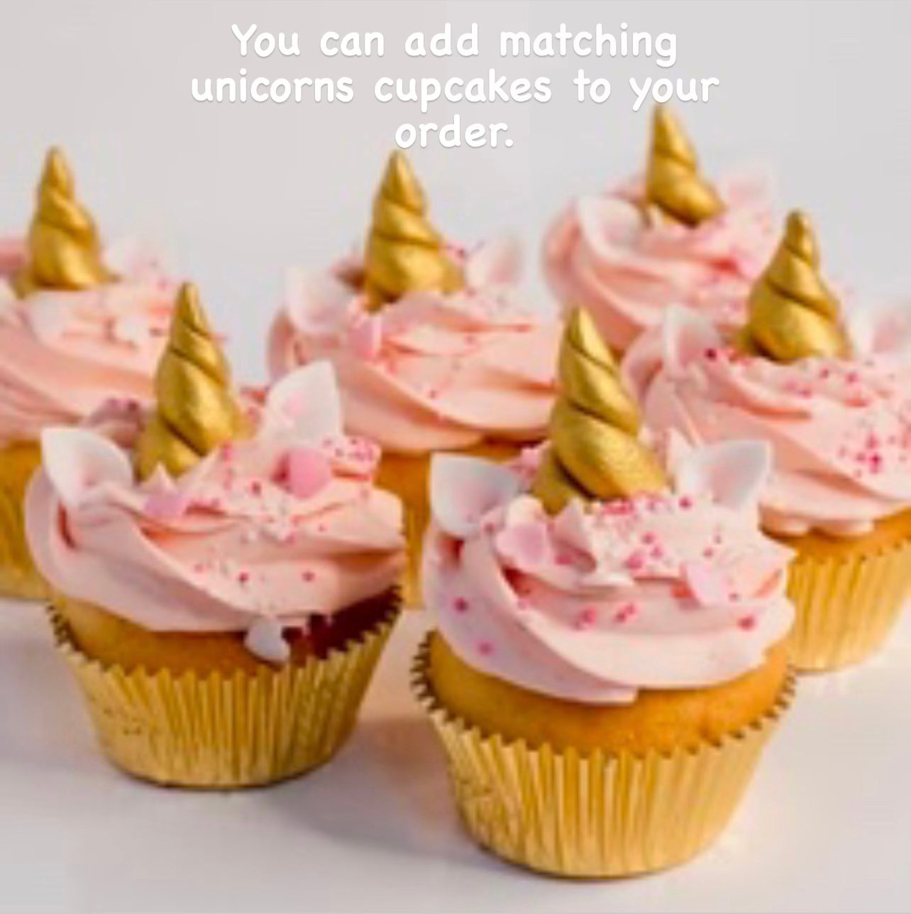 Golden Unicorn Horn: Standing tall on top is a golden unicorn horn, shimmering with edible glitter. This magical edible horn is crafted to perfection, adding a touch of fantasy.