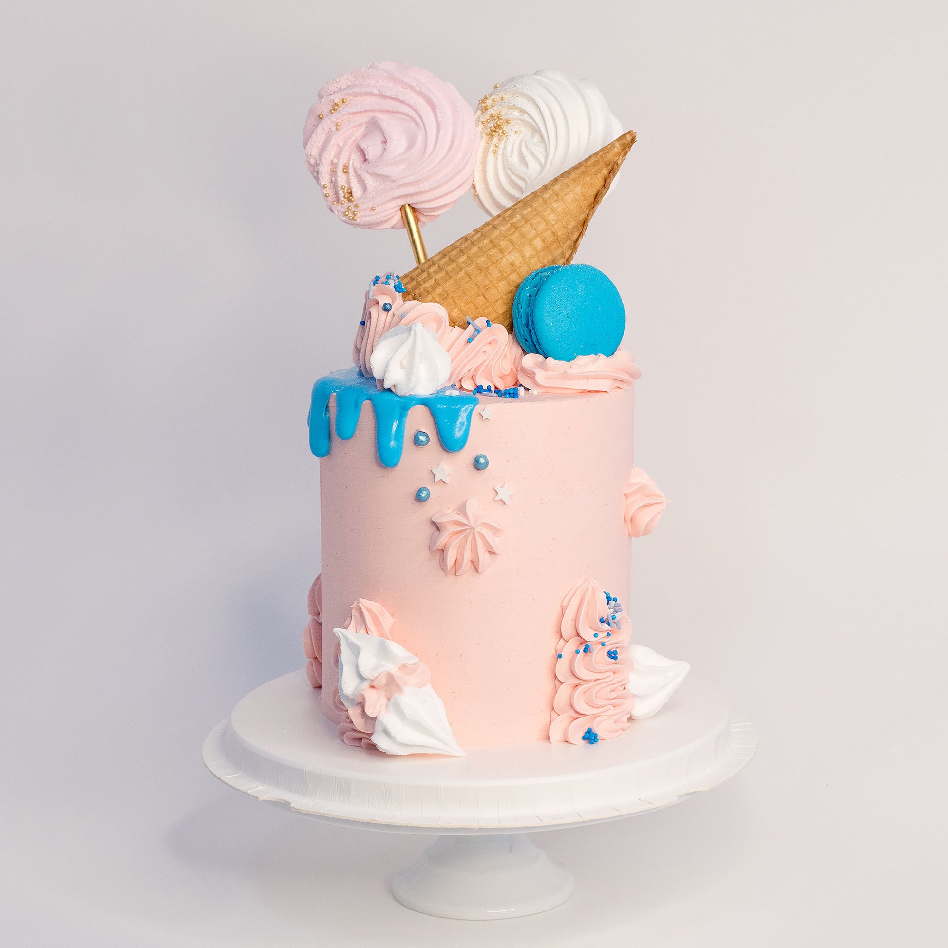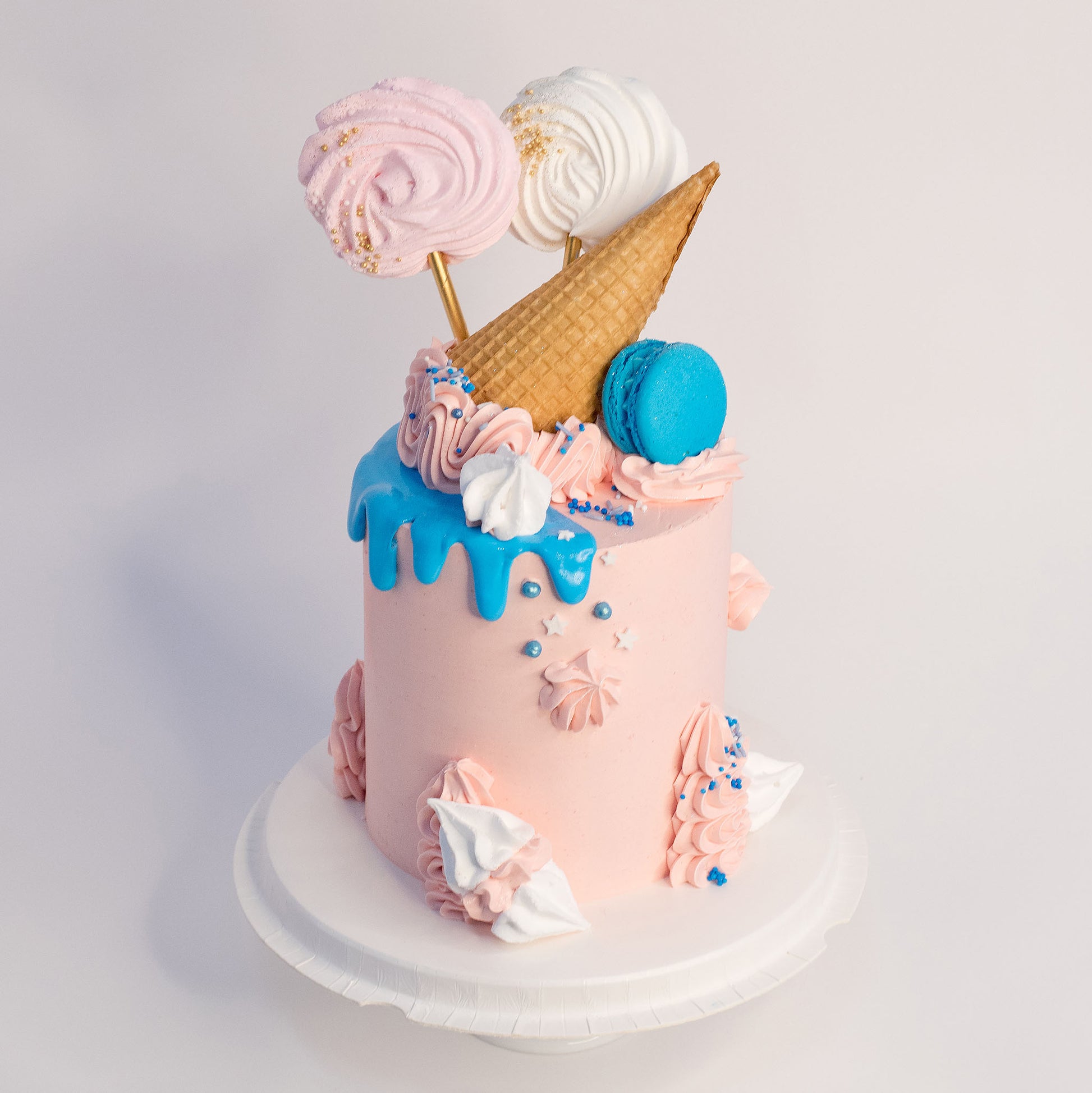 Blue Macaron: Delicious bubblegum blue macarons is carefully placed on the cake, adding a balanced pop of colour and a delightful flavour that balances the design.