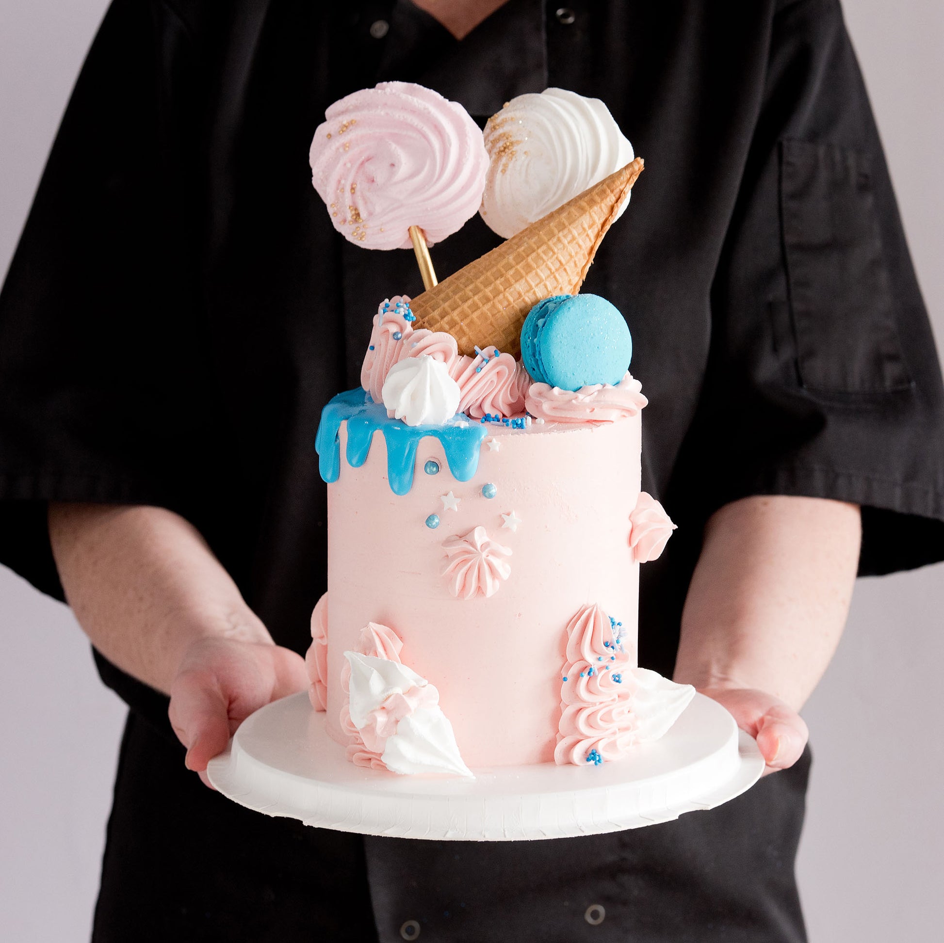 - The Outside: This cake is lavishly coated in a light pink in our signature Italian buttercream renowned for its silky smooth texture and delicious, indulgent taste. Each layer of buttercream is expertly applied to ensure a flawless finish that is as delicious as it is beautiful.