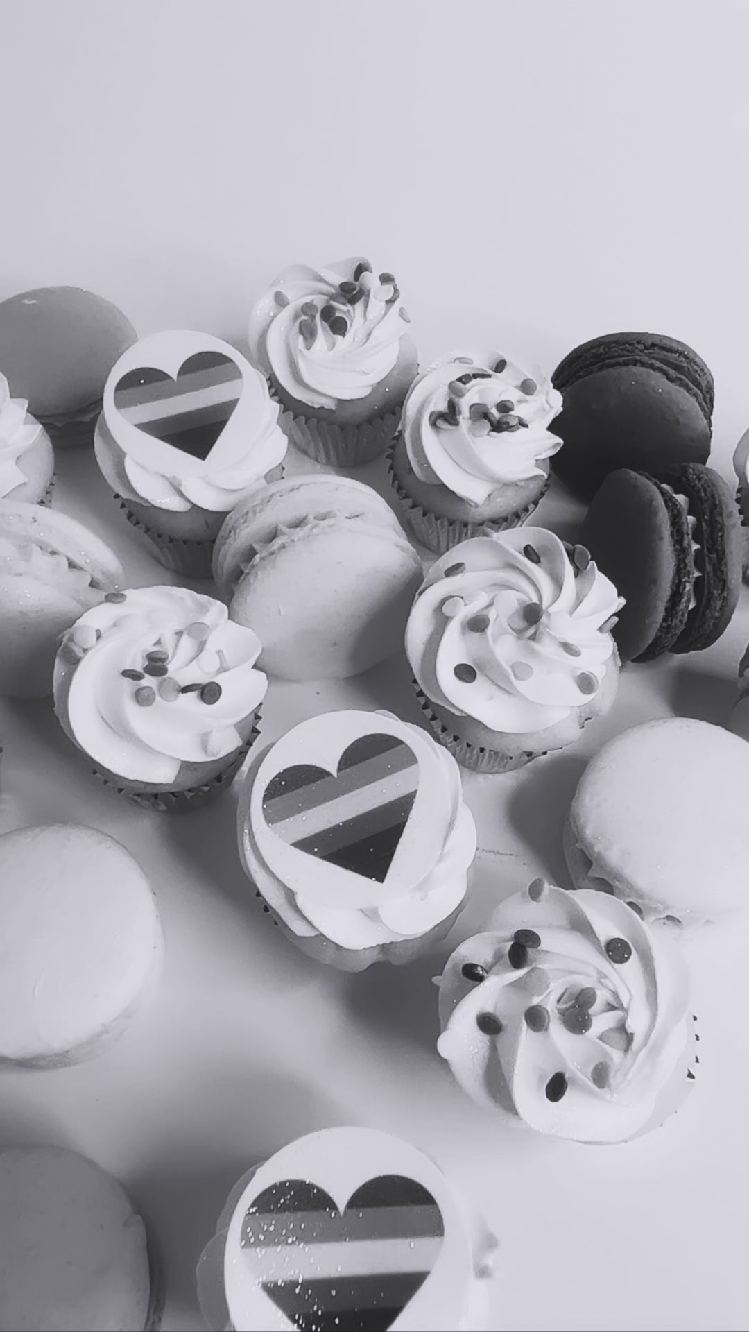 With edible confetti, rainbow heart on top of vanilla Italian buttercream mini cupcakes full of deliciousness mini cupcakes and fun, bright pillowy gluten free macarons are perfect to share and show you stand together with the unwavering support of rights and acceptance of LGBTQI community, family, friends, and allies, so we can all flourish as Cake love'n gorgeous individuals.