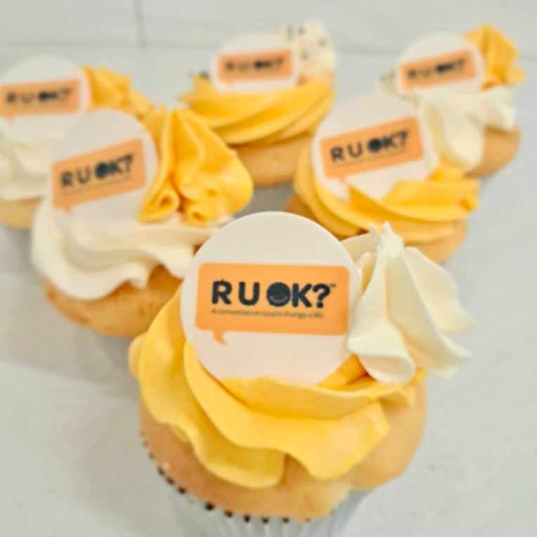 Each cupcakes has a edible disk, promoting your commitment to the people around you by asking " R U OK"