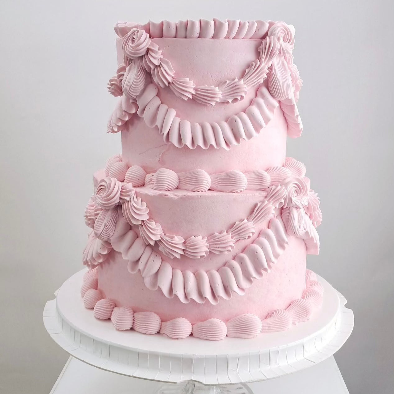 - Vintage Style Decorations: The cake is adorned with intricate vintage-style decorations. Each swirl, rosette, and delicate detail is hand-piped by our skilled cutie team. These elegant touches evoke a sense of nostalgia, making this cake a perfect centre piece for any vintage-themed celebration. There is also room on the top to add a topper.