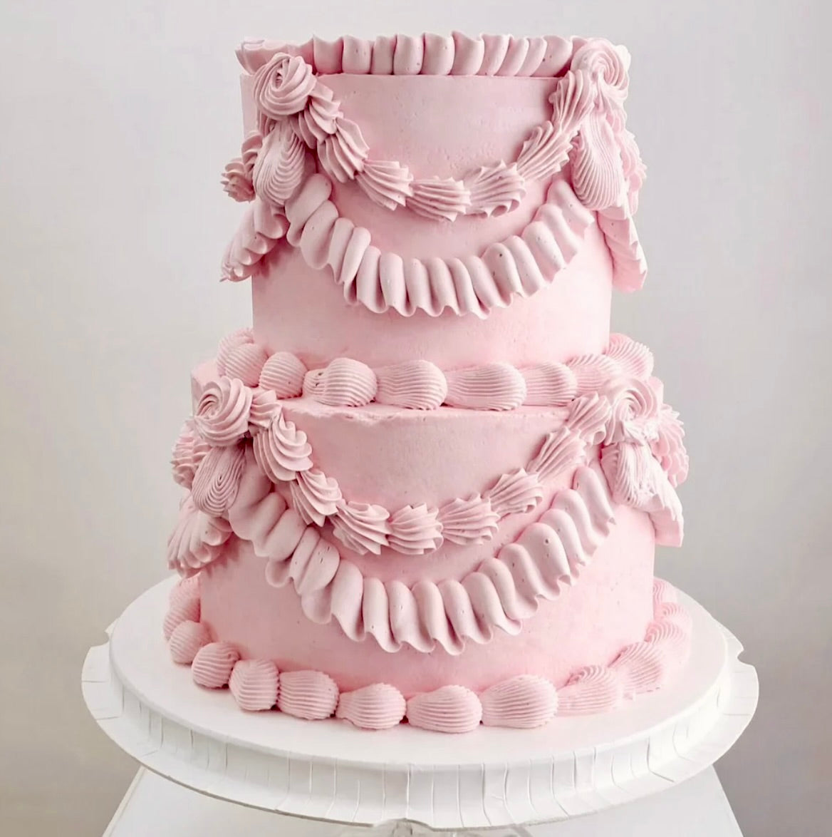 - Vintage Style Decorations: The cake is adorned with intricate vintage-style decorations. Each swirl, rosette, and delicate detail is hand-piped by our skilled cutie team. These elegant touches evoke a sense of nostalgia, making this cake a perfect centre piece for any vintage-themed celebration. There is also room on the top to add a topper.